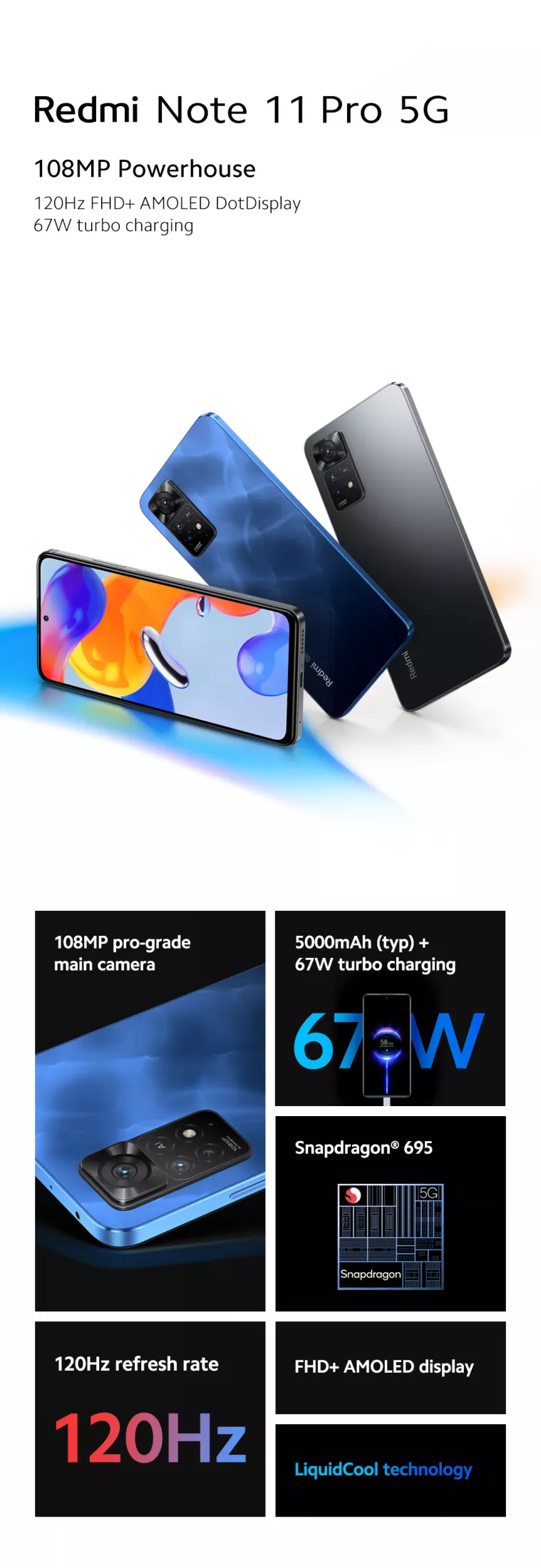 小米红米Note 11 Pro 5G 128GB/全球版(免费:钢化玻璃+后盖)