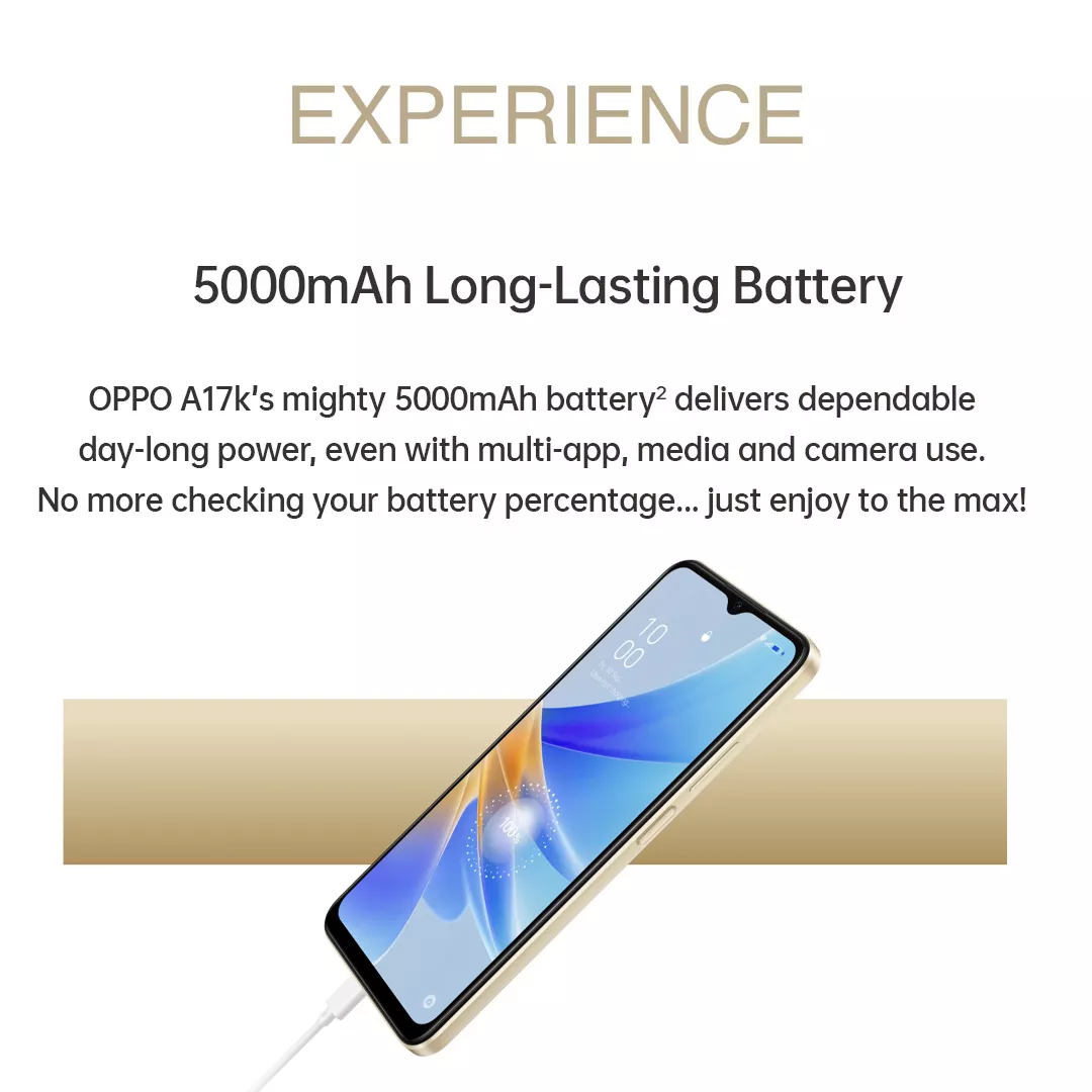 OPPO A17K 64GB/IPX4防水/5000mAh长效电池/侧面指纹解锁/2年本地保修(免费128GB Micro SD卡)
