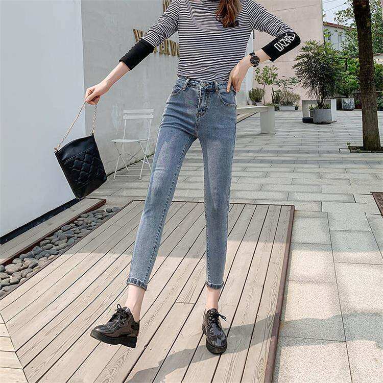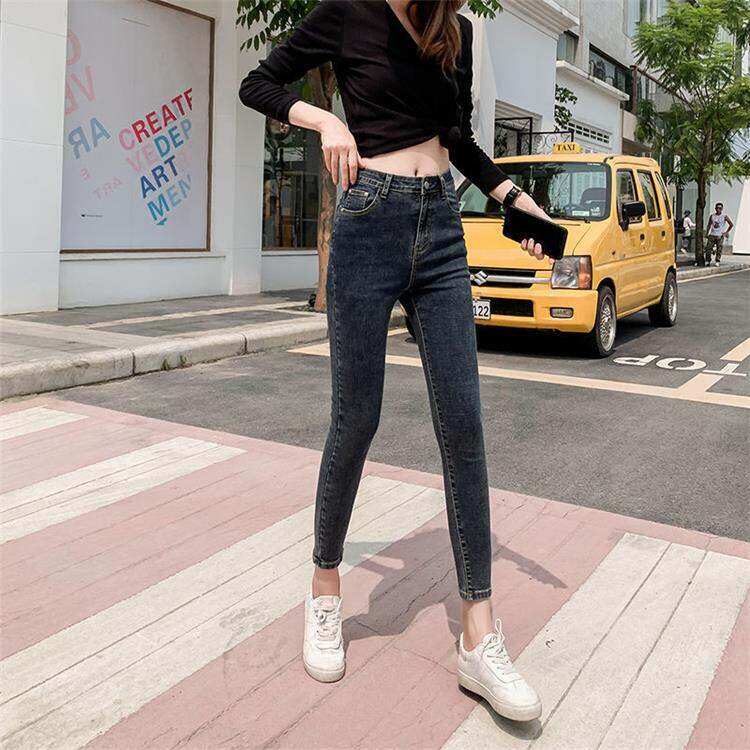 2022春夏新款牛仔女式高腰紧身长裤