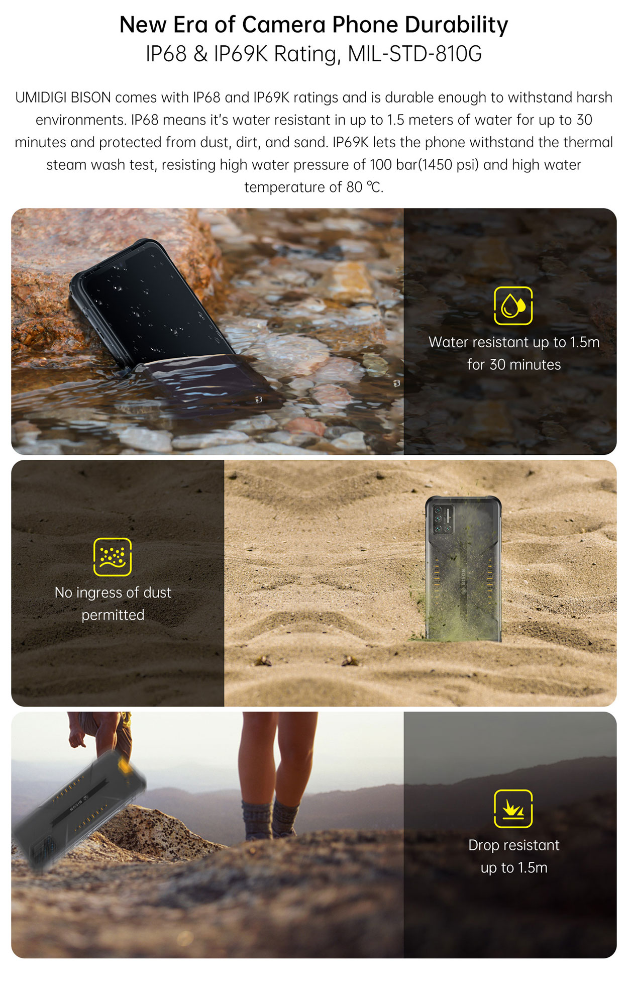 UMIDIGI SG官方| BISON | NFC谷歌支付| IP68 IP69K防水| 6.3 FHD 2K显示屏| 48MP索尼相机| 5000mAh SG 3针18W快速充电